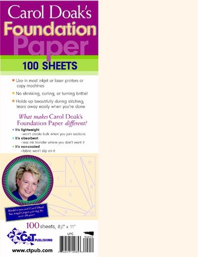 Quilt Shops: The Carol Doak`s Foundation Paper can be ordered from your distributor or directly from C & T Publishing at 1-800-284-1114.